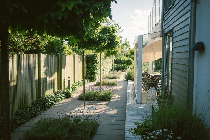 Familjen hade bott flera år i sin älskade villa intill Öresund när de kontaktade PARADIS. Man trivdes inte riktigt med trädgården, vars baksida främst bestod av gräsmatta, häck, plank och en liten uteplats som sällan användes. På önskelistan stod nu mer njutning och mer fägring! Även en sittplats i kvällssolen, mer rumslighet och en mer privat, ombonad känsla. Och, framförallt - att allt tillsammans bildade en harmonisk helhet!